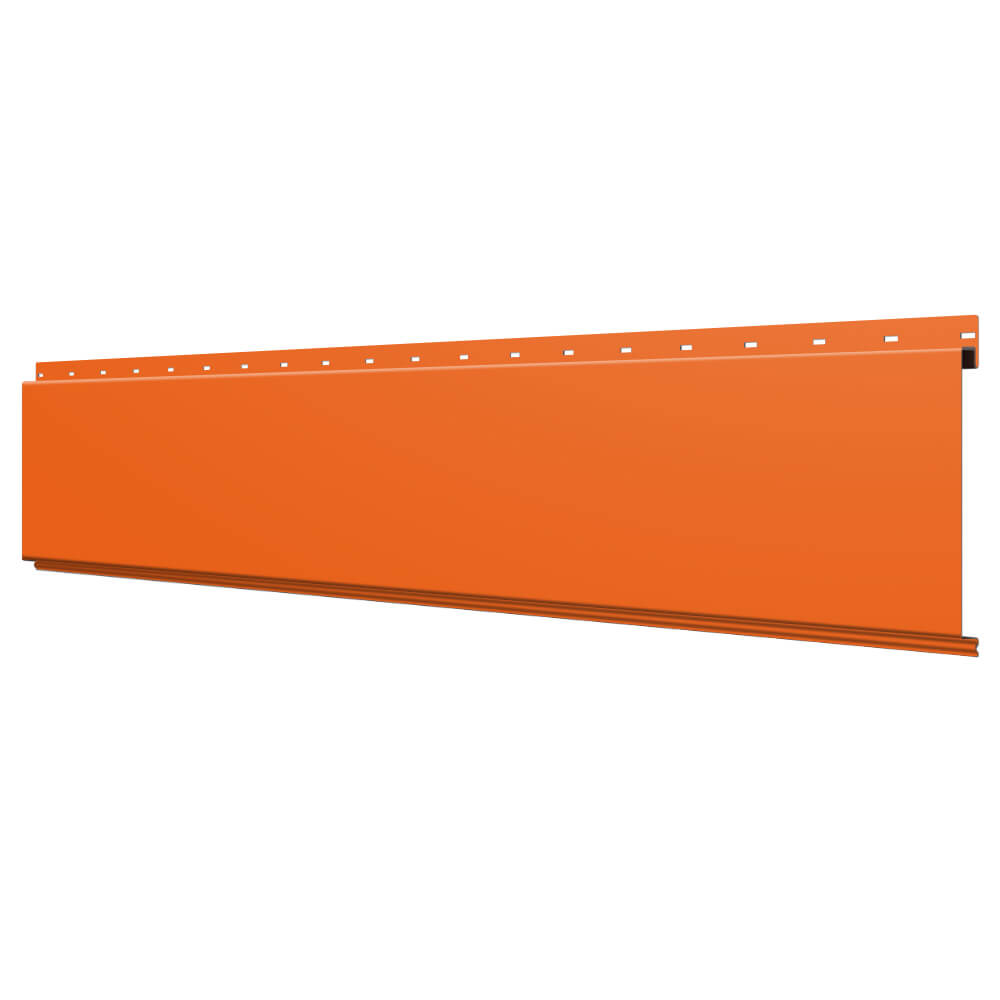 Линеарная потолочно-стеновая панель ГЛАДКАЯ цвет RAL2004 Оранжевый Апельсин применяется в качестве софитов для подшивы крыши, наружной и внутренней отделки потолков, стен, фронтонов фасада дома в Семее.