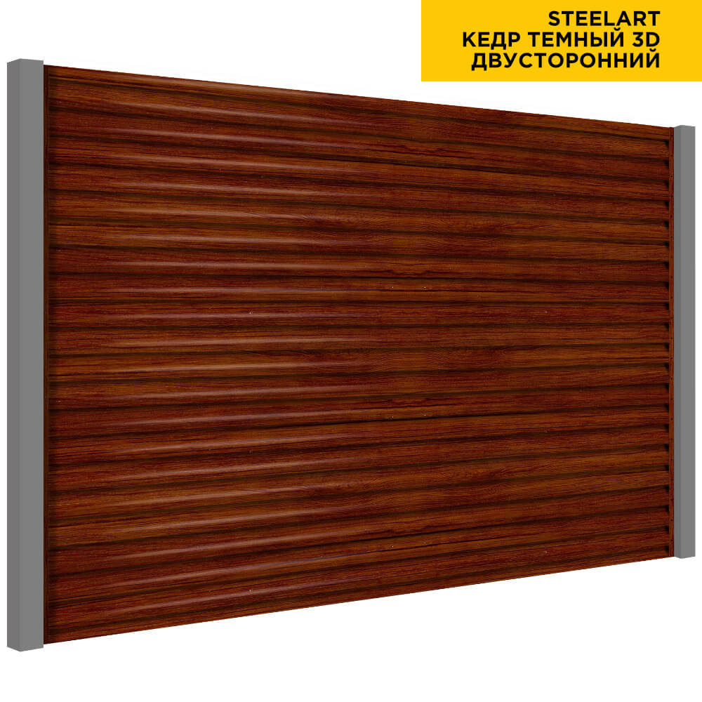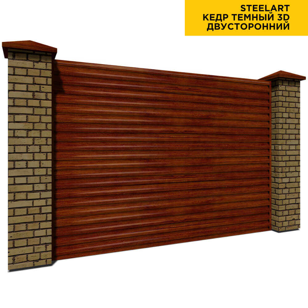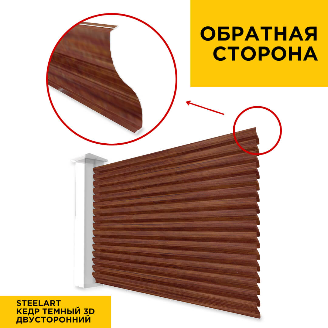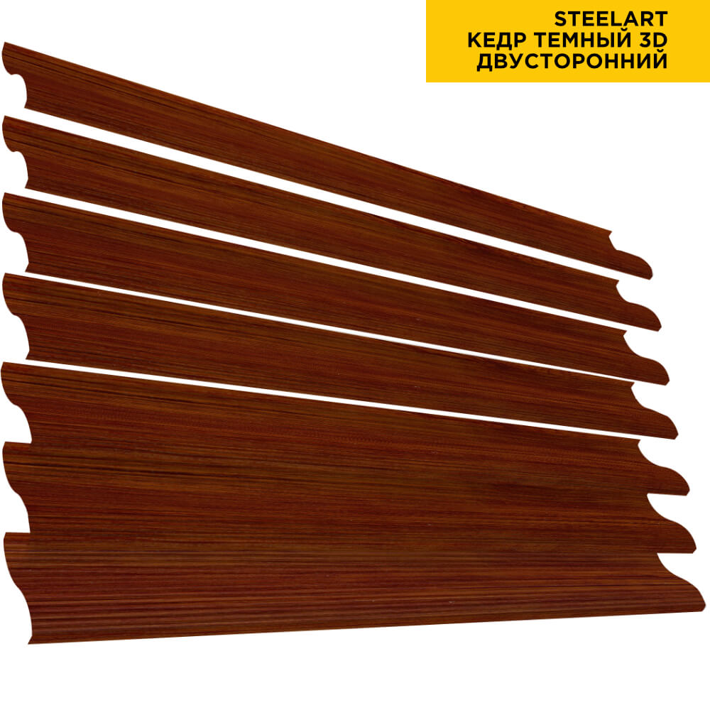Ламель Еврожалюзи металлическая S-образная, цвет под дерево Кедр Темный 3D SteelArt Россия двухстороннее покрытие, длина любая кратно 1см под заказ - для забора-жалюзи, беседки, перголы в Семее