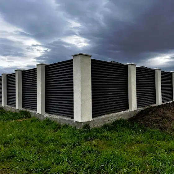 Забор, который не просто защищает участок, но подчеркивает стиль и статус вашего дома. Горизонтальный секционный забор-жалюзи Еврожалюзи в изысканном оттенке RAL 8019 Тёмный Шоколад матовый двусторонний — это идеальное сочетание надежности и элегантности. Эффект ламелей создает современный облик, дарит ощущение уюта и уединения, а благородный матовый цвет гармонично впишется в любой экстерьер. Такой забор не только долговечен, но и превращает территорию в пространство с характером — стильное, уютное и защищённое.